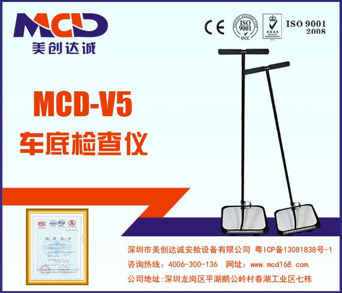 MCD-V5是美創(chuàng)達(dá)誠(chéng)安檢設(shè)備有限公司推出的一款非常受歡迎的車(chē)底安全檢查鏡,30CM超大方形凸面鏡,大功率高亮白光LED燈,可充電電池。經(jīng)濟(jì)便攜,簡(jiǎn)單明了,帶三個(gè)支撐活動(dòng)的輪子,推動(dòng)輕便,桿子活動(dòng)范圍大,適用于不同角度的空間,是一款被廣泛應(yīng)用于檢查車(chē)子、桌子、凳子等底部是否有異常的安檢工具。