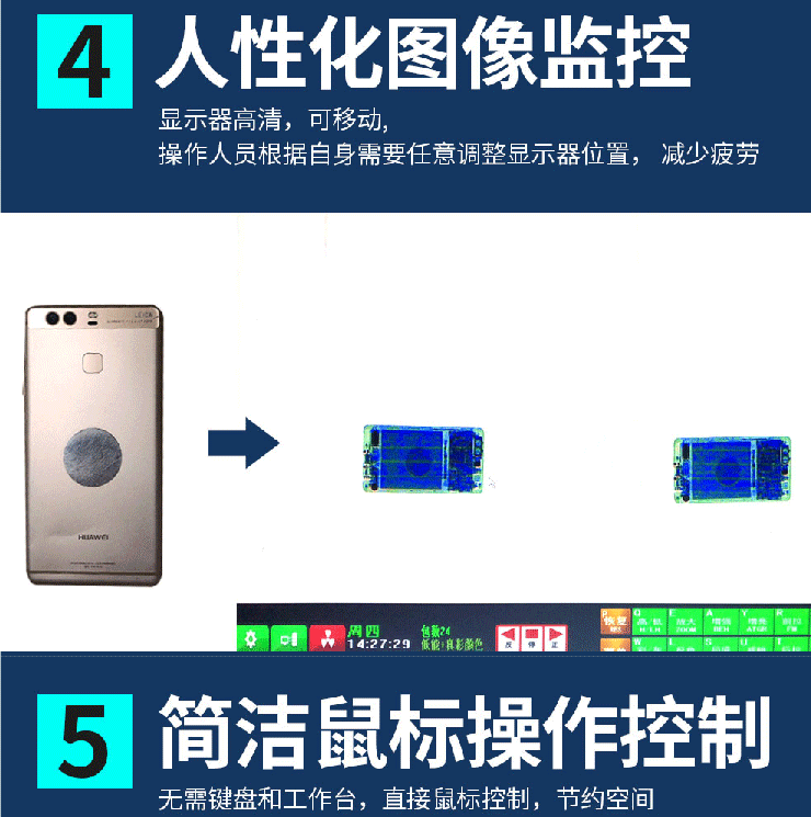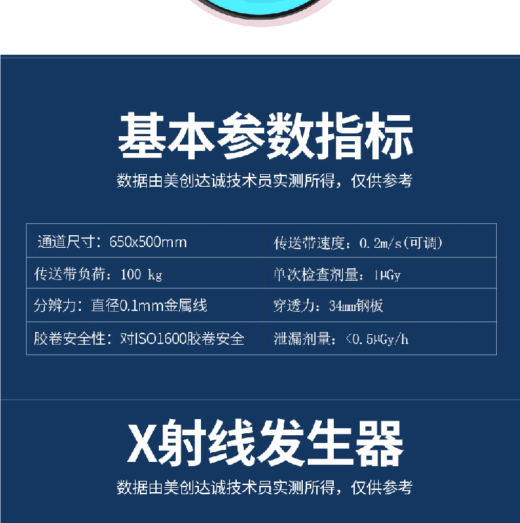 用于射線穿透檢查,可發(fā)現(xiàn)物體內(nèi)部的金屬結(jié)構,能顯示肉眼看不到地方。應用于工廠檢驗產(chǎn)品及事業(yè)單位的安檢如:電子廠、鞋廠、玩具廠,法院、車站、以及大型活動的手提包的安檢。