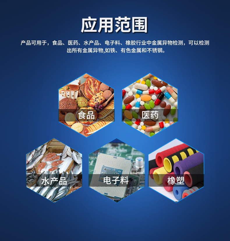 6、檢測靈敏度:直徑0.8-3.0mm鐵球,1.5-5.0mm不銹鋼(探測精度與機(jī)器的高度和寬度有直接關(guān)系,通常高度越高,寬度越寬,機(jī)器的探測精度越低,反之,相反。)