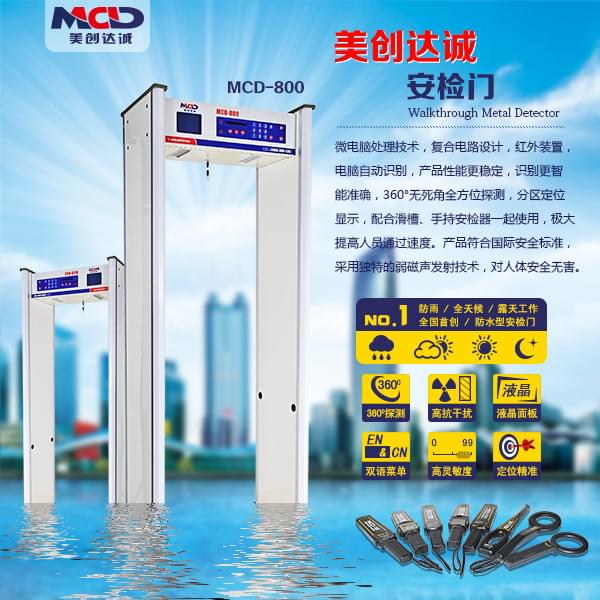 MCD-800A高考安檢門是一款非常高端精密的金屬探測門,美創(chuàng)達誠所推出的這款MCD-800金屬探測門采用國際先進數碼探測技術,專門用于對人身上隱藏的金屬及合金物品的探測防范。整體防火、防水、防震設計,加寬型門板設計外觀大氣,安全性高、適用性強、靈敏度高、探測范圍廣、抗外界干擾能力強,能夠24小時智能服役,能夠聲光同時報警,在質量、效果、技術參數上均達到了世界領先水平??梢哉{節(jié)靈敏度,最高可以探測到曲別針大小的金屬物,并可以區(qū)分金屬所藏區(qū)位顯示,用戶還可根據探測金屬的大小、體積、重量等進行設置,以排除硬幣、鑰匙、首飾,適合于私人豪宅等地方,以及需防止攜帶危險金屬物品的場所,"MCD-800A"不光應用在考場,同時也可以應用在機場、海關、監(jiān)獄、展廳等地方,安裝美創(chuàng)達誠"MCD-800A"數碼金屬安檢門將是您英明的選擇!
