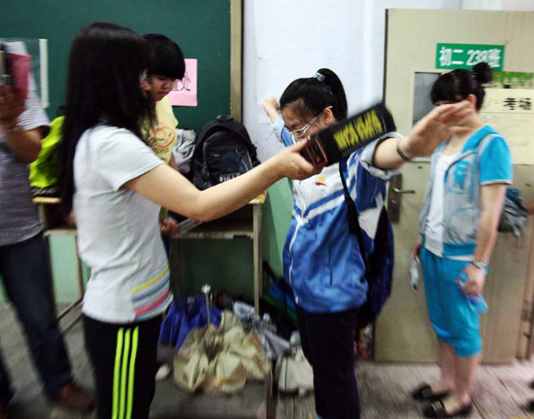 4:監(jiān)考教師對考生的檢查順序應由正面至背面,從上至下,檢查的部位包括頭部、軀干、四肢(含腳部),特別要加強對腋下、腰部、腳部及衣袋等有可能放置通訊工具的部位的檢查。檢查工作主要由女性監(jiān)考教師實施,并盡量避免手持金屬探測器接觸考生身體。
