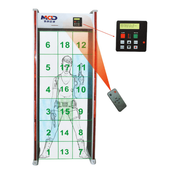 MCD-500C型是針對(duì)出口的一款金屬探測(cè)門(mén),單行液晶屏全英文菜單設(shè)計(jì),全方位18區(qū)域探測(cè),定位精準(zhǔn),性能穩(wěn)定。采用進(jìn)口防火板為門(mén)板材料,有防火、防水、防震、重量輕等優(yōu)點(diǎn)。門(mén)兩側(cè)柱子上安裝有與人體等高的高亮度LED報(bào)警指示燈。門(mén)中建立有電磁場(chǎng),當(dāng)人體攜帶金屬物品通過(guò)時(shí)能產(chǎn)生報(bào)警的裝置,能準(zhǔn)確探測(cè)到人身上或手體包箱中攜帶的金屬物品或含有金屬的物品,如各種管制刀具、武器、金屬制品、電子產(chǎn)品及其他含有金屬的物品等,用來(lái)進(jìn)行安全檢查、防偷竊檢查的一種有效工具,主要應(yīng)用于政府機(jī)關(guān)、公安機(jī)關(guān)、檢察院、法院、監(jiān)獄、看守所、海關(guān)、機(jī)場(chǎng)、車(chē)站、體育場(chǎng)館、會(huì)展場(chǎng)館、娛樂(lè)場(chǎng)所、大型集會(huì)等場(chǎng)所以及五金、電子、首飾、軍工、造幣等工廠或企業(yè)。